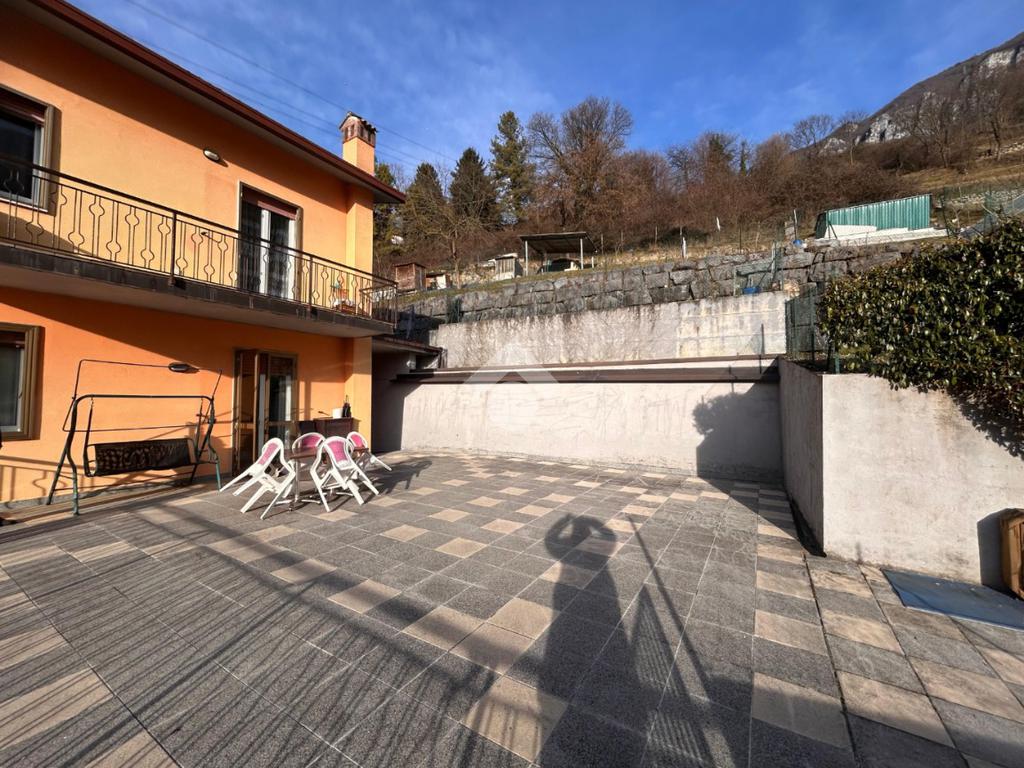 Nel comune di Casazza proponiamo in vendita appartamento di circa 150 mq situato al piano basso di una palazzina civile. L’immobile si sviluppa su quattro locali con ambienti ampi e ben distribuiti. L’ingresso conduce a un soggiorno di generose dimensioni, luminoso e con accesso diretto al balcone. La cucina è abitabile ed è collegata allo stesso balcone del soggiorno garantendo funzionalità e continuità tra gli spazi.