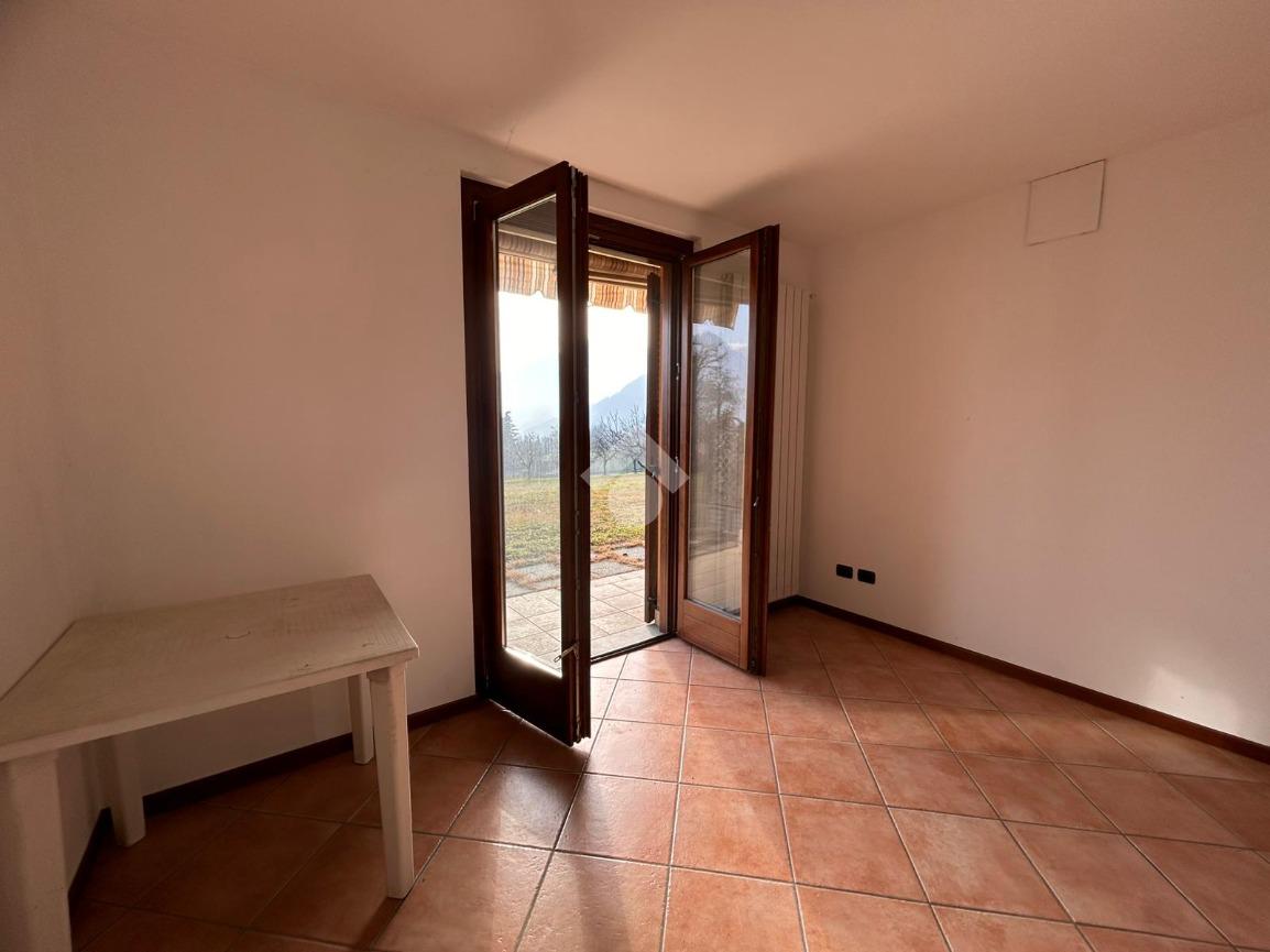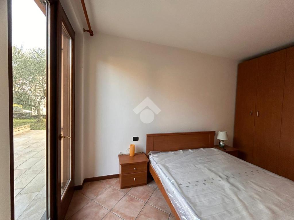 La camera da letto matrimoniale è confortevole e dispone di accesso a un giardino privato, riservato e ideale per chi ama il verde e la tranquillità. Oltre allo spazio esclusivo, l’immobile beneficia anche di un ampio giardino condominiale, condiviso con gli altri appartamenti, che arricchisce ulteriormente il contesto naturale.